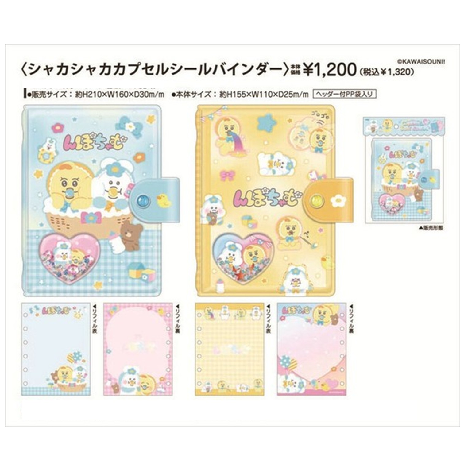 んぽちゃむの「シャカシャカカプセルシールバインダー」の青色・黄色のセットです。